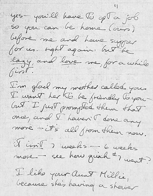 I'm glad my mother called you. I want her to be friendly to you - but I just prompted them that once - it's all from them now. It isn't 7 weeks - 6 weeks more - see how quick #7 went? I like your Aunt Millie, because she's having a shower |